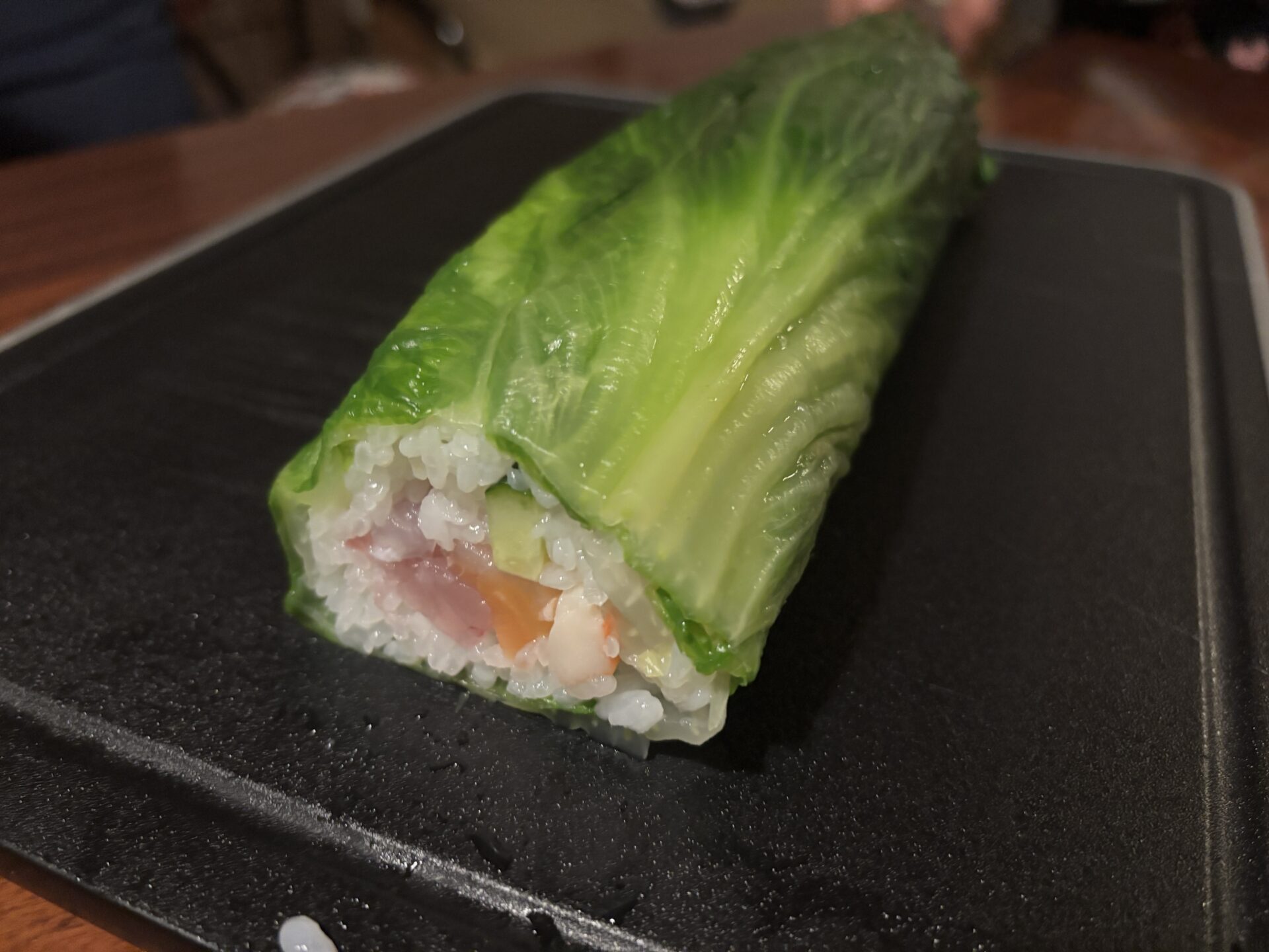 恵方巻きの海苔をレタスにすることでシャキシャキ食感と鮮やかな見た目に!材料レタ…